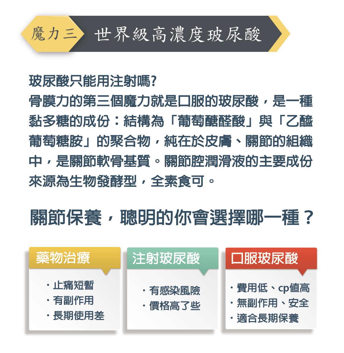 西班牙專利蛋殼膜粉、鳳梨酵素、蛋殼鈣、玻尿酸;維生素D 200IU。 |