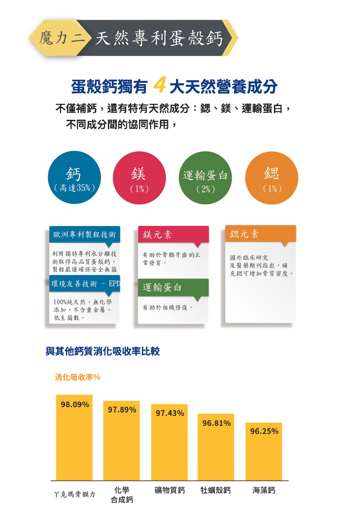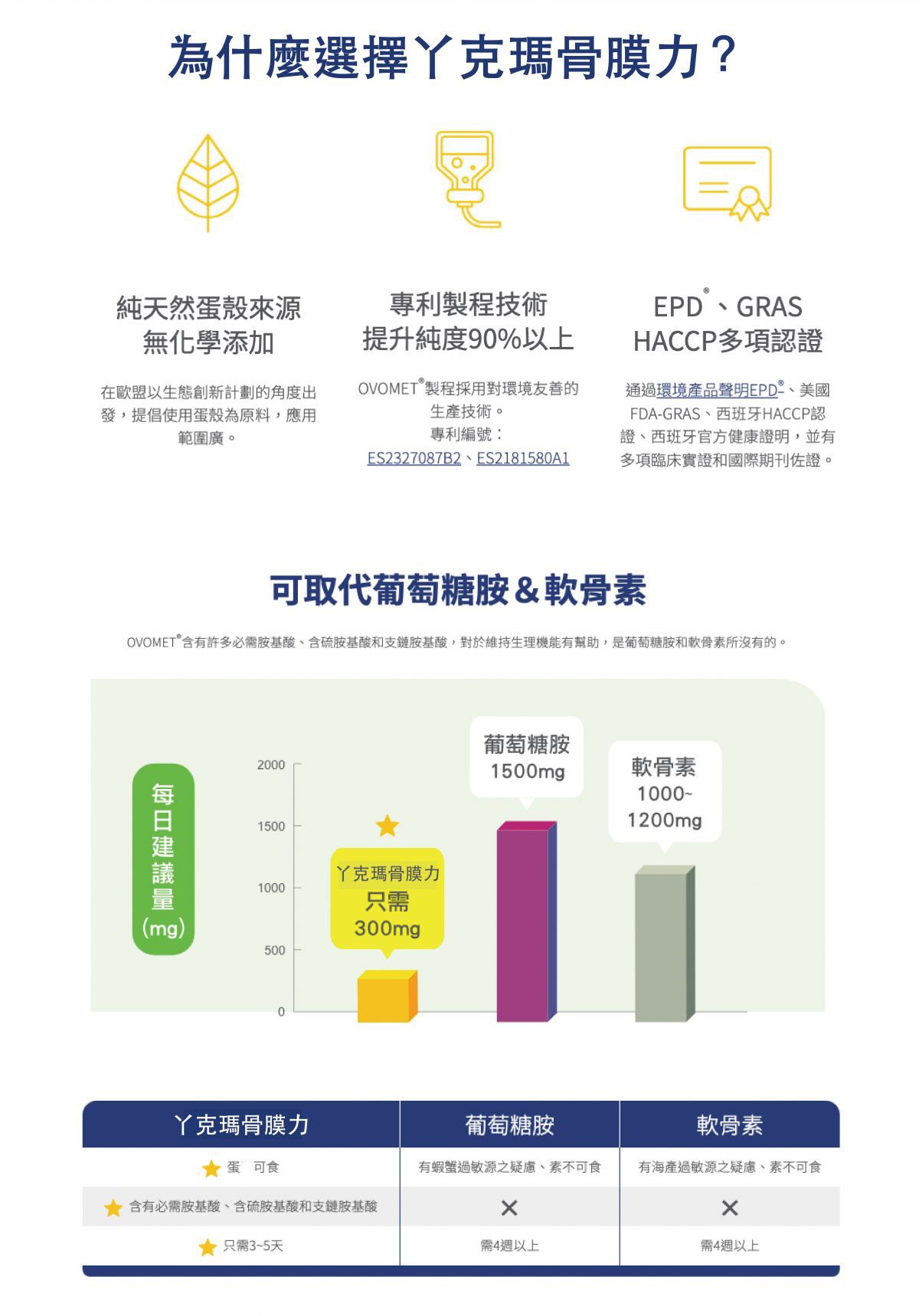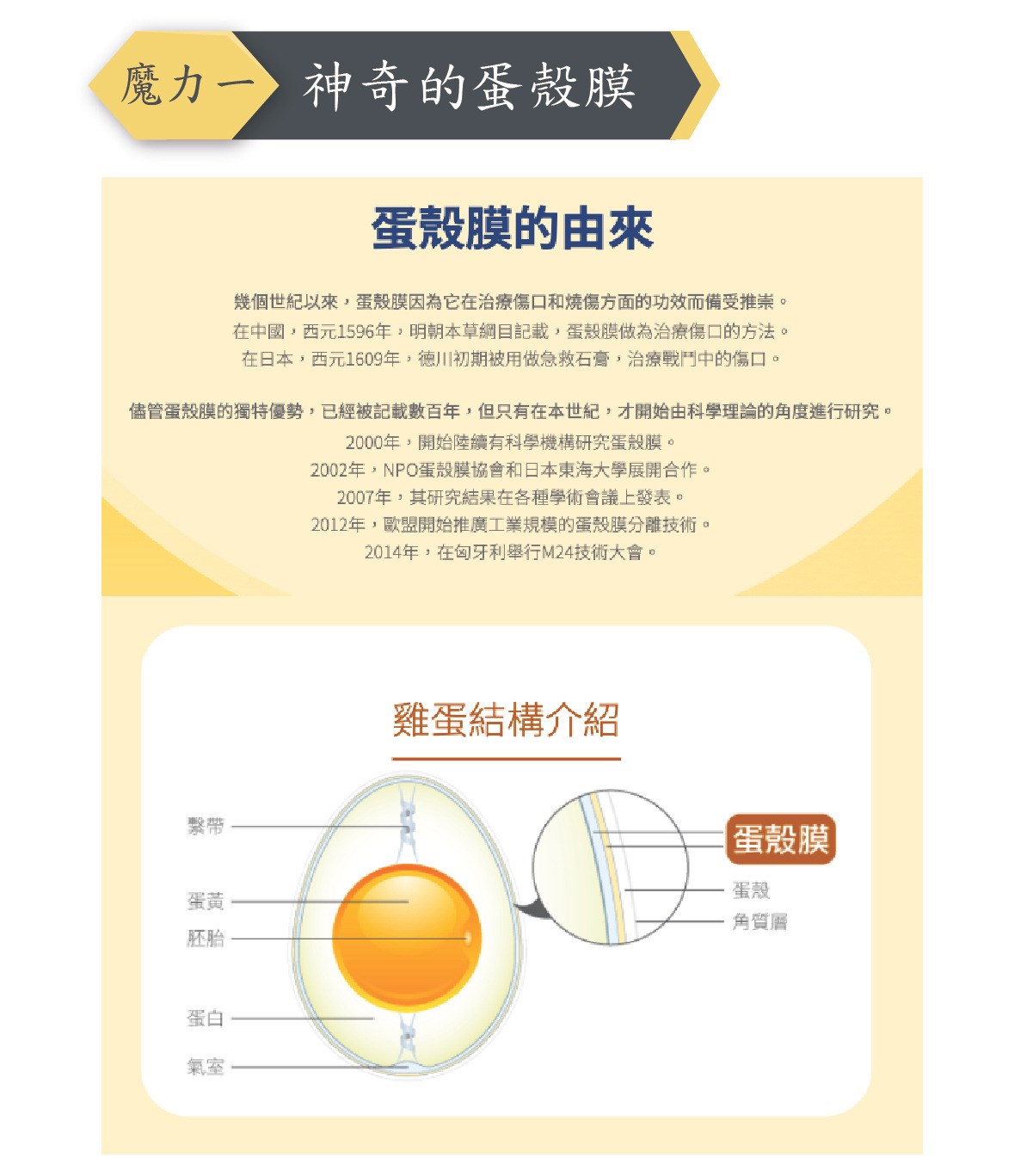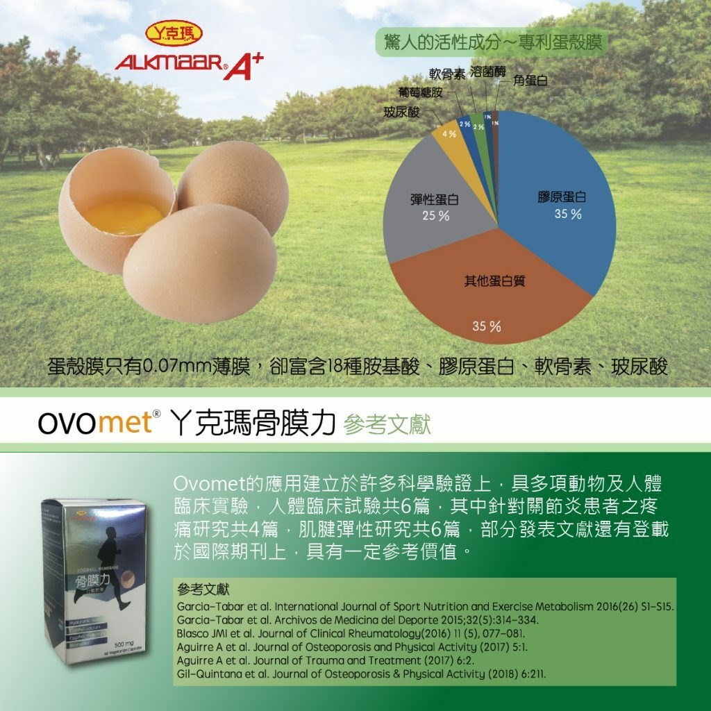 專利蛋殼膜、蛋殼鈣由西班牙原廠Eggnovo OVOMET提供。 |