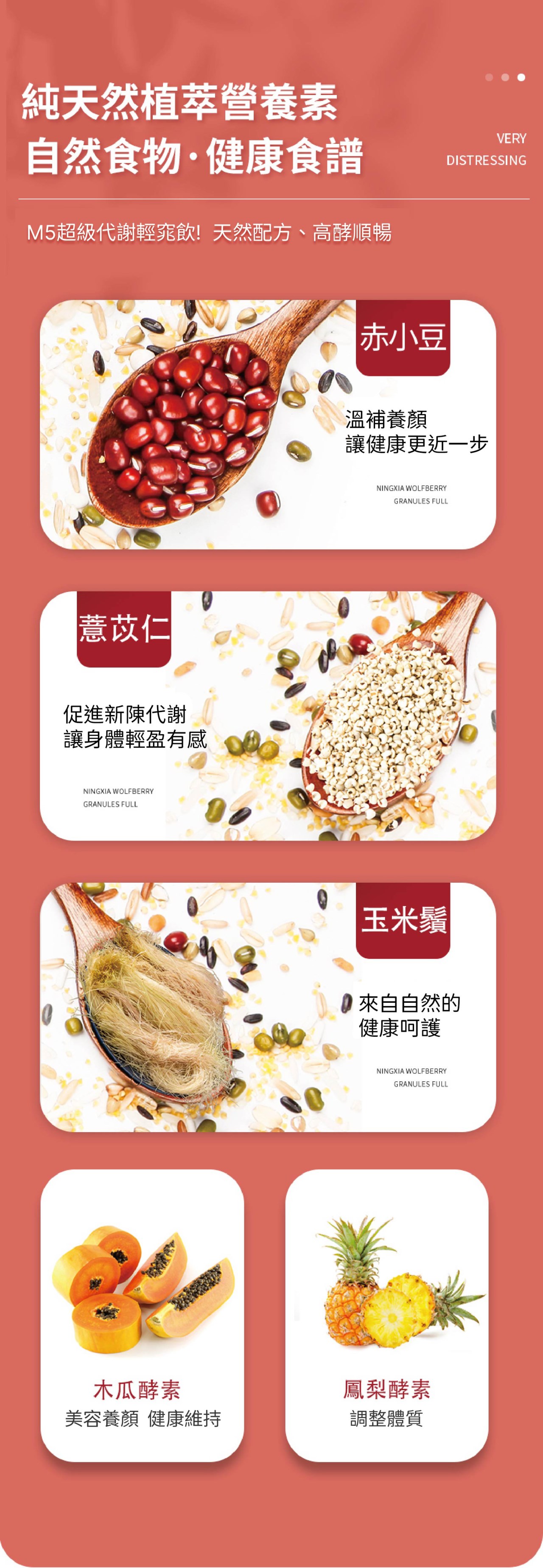 台灣赤小豆萃取、台灣薏仁萃取、鳳梨酵素、美國木瓜酵素、玉米鬚萃取 |