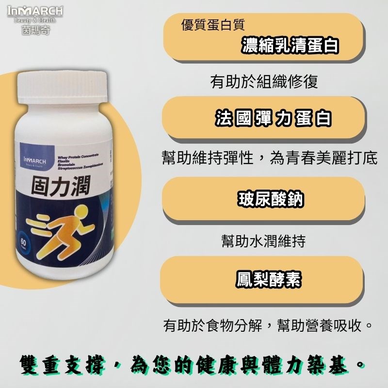濃縮乳清蛋白(濃縮乳清蛋白.卵磷脂)、彈力蛋白、鳳梨酵素、流行鏈球菌發酵物(含透明質酸鈉)植物膠囊成分 羥丙基甲基纖維素、純水、鹿角菜膠、食用紅色四十號、氯化鉀、食用藍色一號。 |